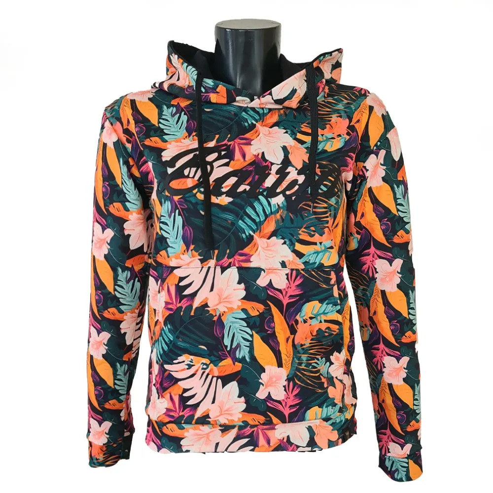 Táto mikina je presne ten typ kúska, ktorý si vezmeš raz - a potom už ho nechceš zložiť. Výrazný kvetinový vzor inšpirovaný tropickou prírodou dodáva energiu, ale vďaka tmavému podkladu zostáva nositeľný aj na každý deň.